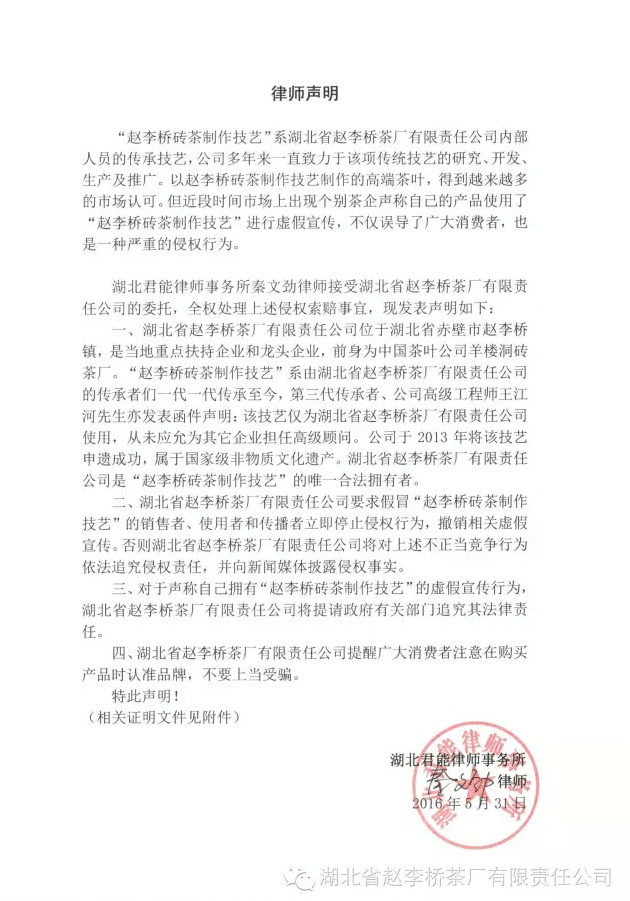 2016-06-02 湖北省趙李橋茶廠有限責(zé)任公司
