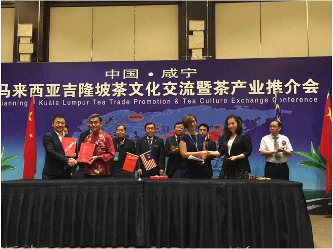 2017年4月1日,由咸寧市人民政府、馬來西亞茶業(yè)商會(huì)主辦、赤壁市和咸安區(qū)人民政府及咸寧外僑辦協(xié)辦、東盟中國經(jīng)濟(jì)貿(mào)易發(fā)展促進(jìn)會(huì)支持的主題為“茶文化交流暨茶產(chǎn)業(yè)推介會(huì)”在馬來西亞首都吉隆坡洲際大酒店隆重舉行。馬來西亞茶業(yè)商會(huì)會(huì)長劉俊光、咸寧市市長王遠(yuǎn)鶴、東盟中國經(jīng)濟(jì)貿(mào)易發(fā)展促進(jìn)會(huì)會(huì)長拿督吳國強(qiáng)、赤壁市市長李朝曙、馬來西亞國際貿(mào)易與工業(yè)第二部長、拿督斯里黃家泉、中國駐馬大使館商務(wù)處代表翟毅勃、中方茶企代表李云等與馬來西亞工商界各界人士及茶友匯聚一堂,現(xiàn)場分享了咸寧的特色產(chǎn)品----川字青磚茶,并以青磚茶為媒,實(shí)現(xiàn)跨境合作、友好交流取得圓滿成功。