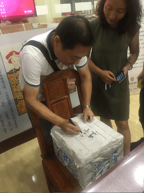 簽名售磚進行中(偶遇川字青磚茶鐵桿粉絲東北夫婦)