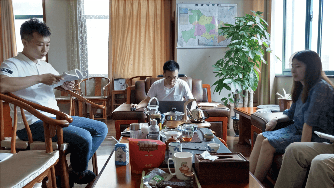 業(yè)務(wù)主管李賀楊(左一)、財(cái)務(wù)黃澤(中)、王雨詩(shī)(右)