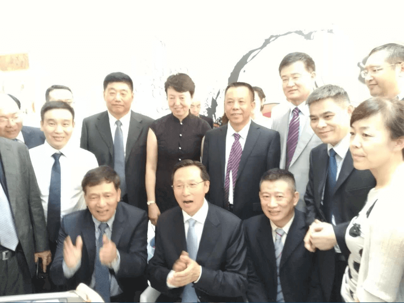 中國(guó)農(nóng)業(yè)部部長(zhǎng)韓長(zhǎng)賦(一排中)與參展企業(yè)代表合影