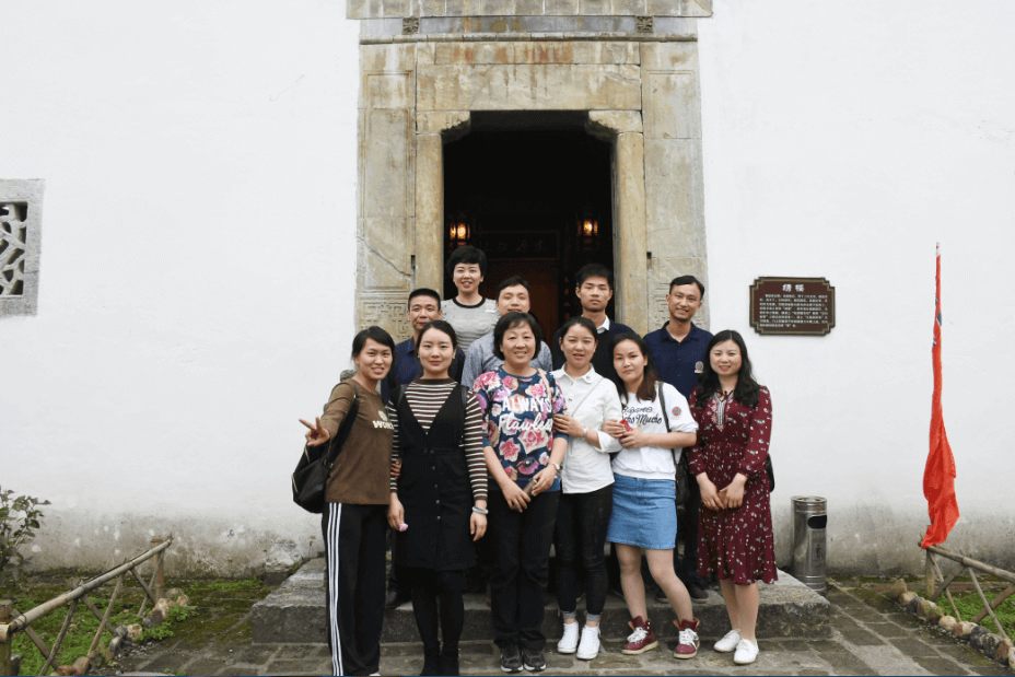 公司門(mén)口“川”字茶家人合影