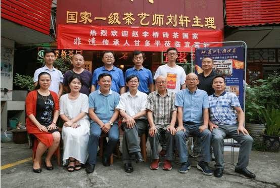 趙李橋磚茶制作技藝第四代代表性傳承人甘多平(前排左三)與品鑒會各位嘉賓合影