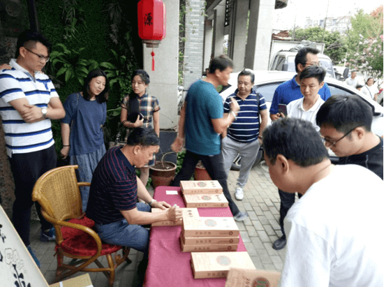 甘多平為嘉賓們簽售青磚茶、米磚茶新品