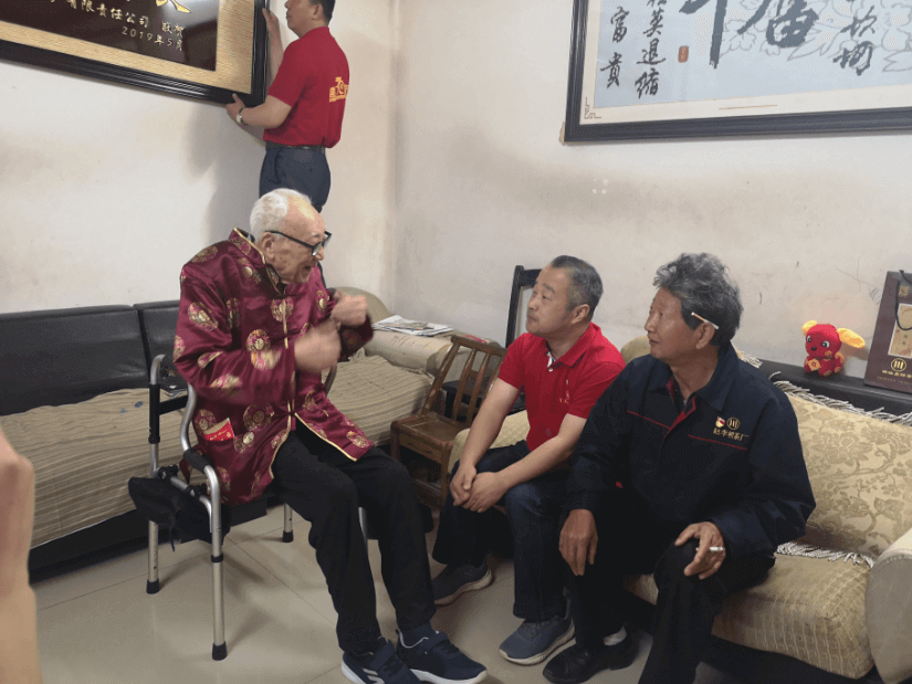 熊老雖已高齡100歲,但思維仍然清晰,若不是去年意外傷了腰,還能行走自如。看到趙李橋茶廠的徒弟徒孫們來到家里給自己賀壽,他非常開心,與大家親切的交談,回憶起茶廠當年的故事。