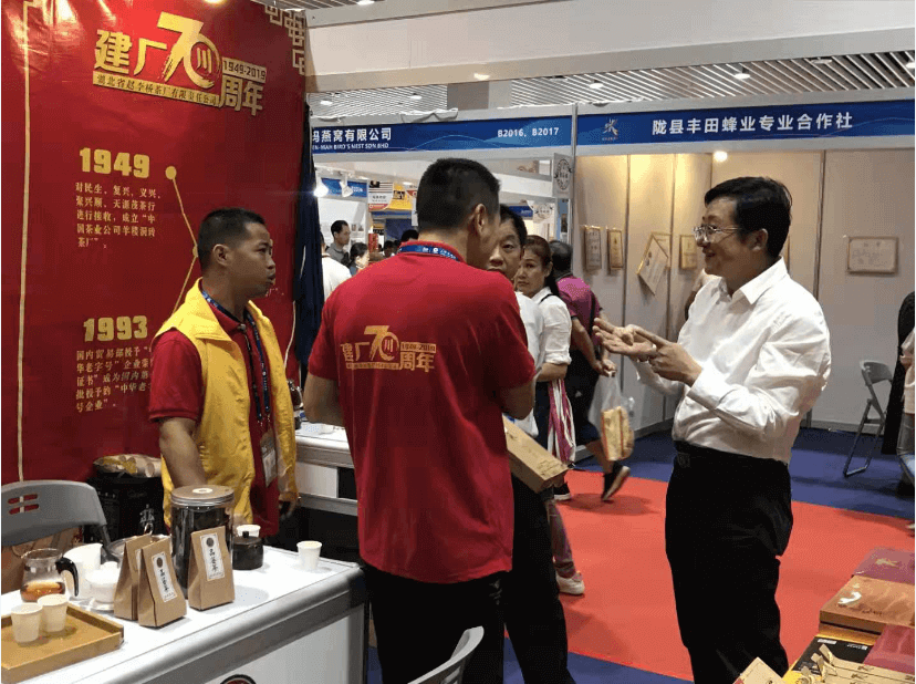 湖北省人大常委會(huì)副主任胡志強(qiáng)蒞臨湖北省趙李橋茶廠展區(qū)指導(dǎo)工作。