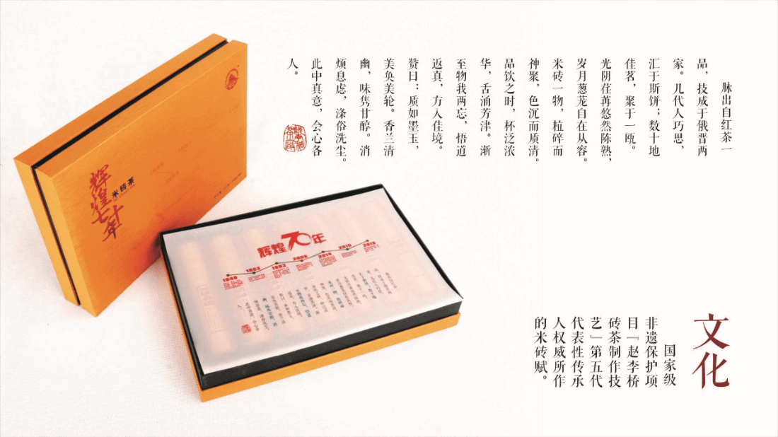 四、文化。國家級(jí)非遺保護(hù)項(xiàng)目“趙李橋磚茶制作技藝”第五代代表性傳承人權(quán)威為產(chǎn)品作賦。