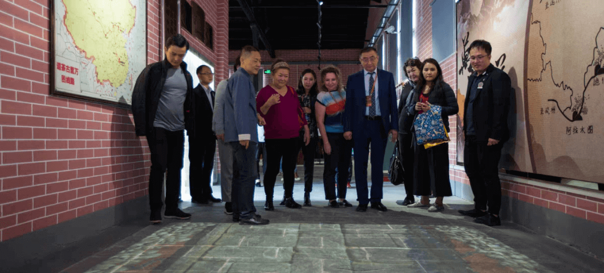 在萬(wàn)里茶道光影展示區(qū),代表團(tuán)一行在地圖上看到了哈薩克斯坦的重要城市阿拉木圖。“為什么會(huì)有俄文青磚茶樣品?”“地圖上為什么有阿拉木圖?”帶著這兩個(gè)疑問(wèn),代表團(tuán)一行向工作人員詢問(wèn)阿拉木圖與青(米)磚茶的歷史淵源。