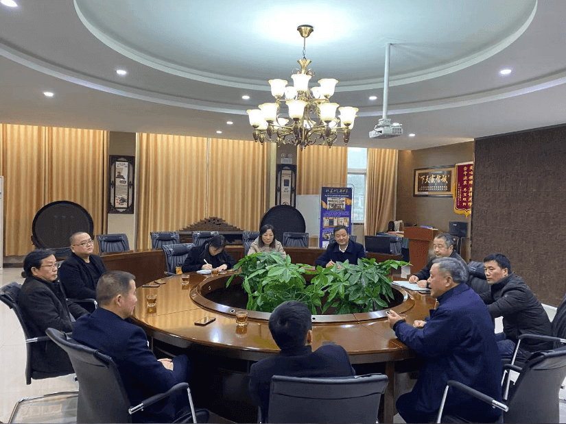 調(diào)研組巡視員段緒光(榮譽墻左一)等成員與我公司領(lǐng)導座談