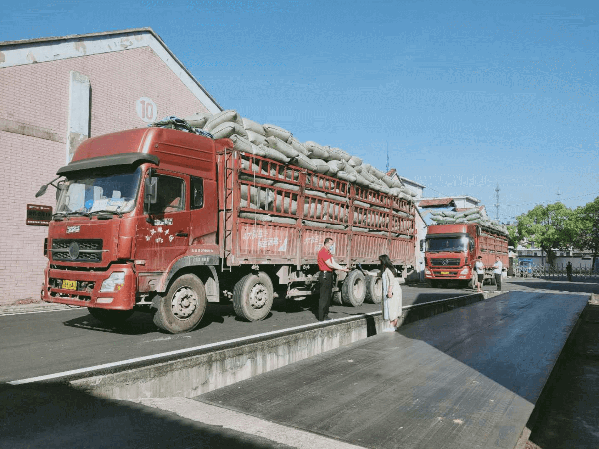 來自福建和赤壁的貨車在廠區(qū)排起了長龍。