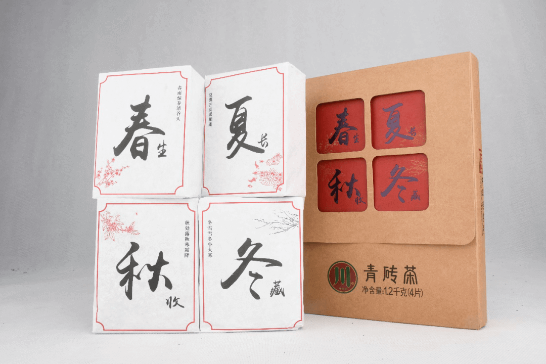 “春夏秋冬”青磚茶選用赤壁當?shù)貎?yōu)質茶鮮葉為主要原料,在傳統(tǒng)青磚茶制作技藝的基礎上精制加工而成。其外形方正平整,香氣純正,湯色橙紅明亮,滋味醇和,松緊適度。該款茶每盒有4片共1.2Kg,10盒/件,全國限量生產3000件。