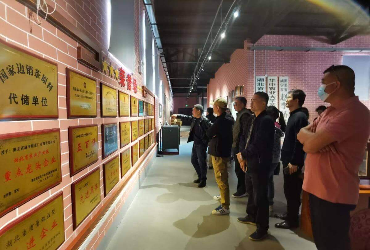 11月14號下午長沙經(jīng)銷商納新茶業(yè)考察團(tuán)走進(jìn)了湖北省趙李橋茶廠有限責(zé)任公司進(jìn)行參觀,由納新茶業(yè)龐總帶隊,趙李橋茶廠國家非遺第五代代表性傳承人權(quán)威、銷售總監(jiān)羅進(jìn)啟介紹趙李橋茶廠歷史文化。