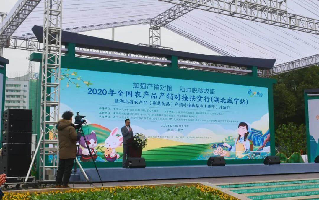 12月16日至18日,由國家商務(wù)部和湖北省政府指導(dǎo),中國蔬菜流通協(xié)會(huì)、湖北省商務(wù)廳和咸寧市人民政府共同主辦的“ 2020年全國農(nóng)產(chǎn)品產(chǎn)銷對接扶貧行(湖北咸寧站)暨湖北省農(nóng)產(chǎn)品(荊楚優(yōu)品)產(chǎn)銷對接幕阜山(咸寧)片區(qū)行"活動(dòng)在咸寧市舉行。活動(dòng)涵蓋省內(nèi)農(nóng)特產(chǎn)品和本地扶貧產(chǎn)品展示展銷、走進(jìn)原產(chǎn)地主題體驗(yàn)日、產(chǎn)銷對接、農(nóng)商互聯(lián)產(chǎn)業(yè)資源對接交流會(huì)等活動(dòng)。