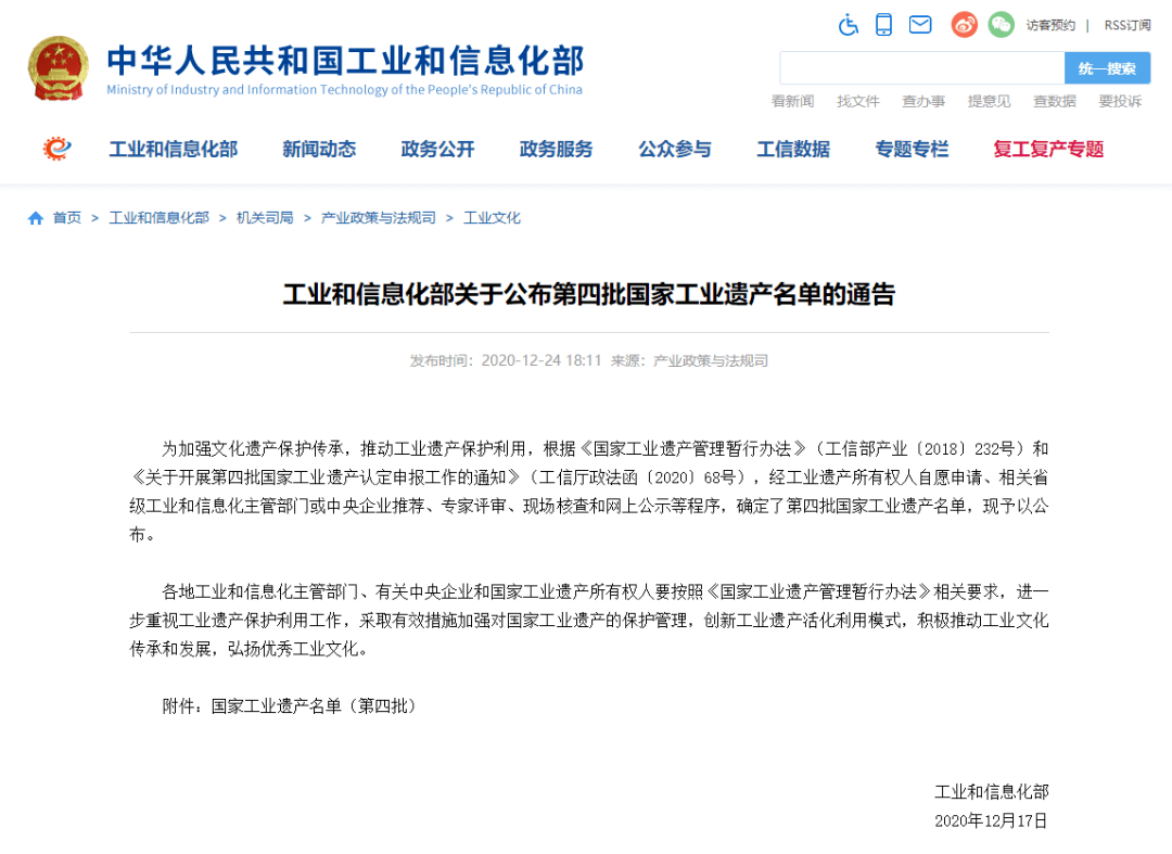 在正式公布的第四批國家工業(yè)遺產(chǎn)名單中