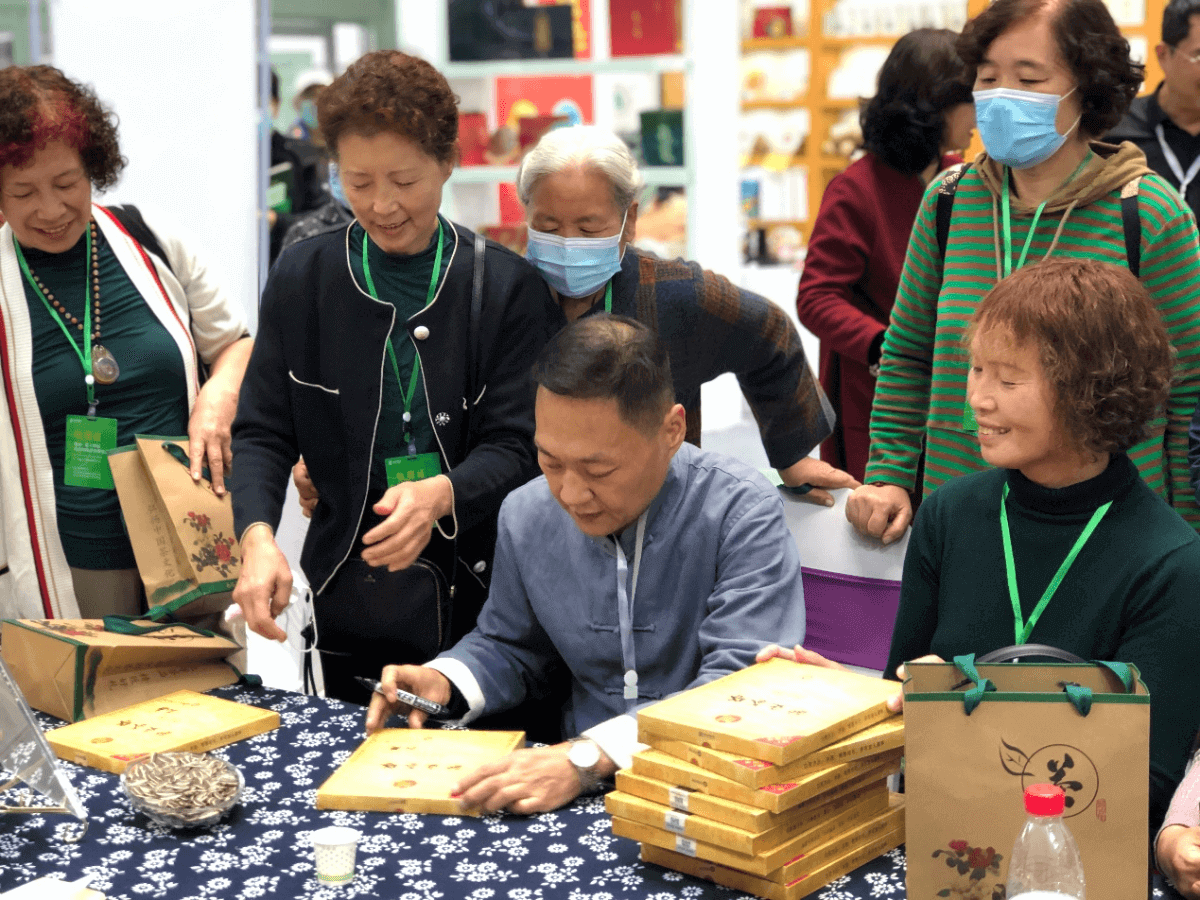 在顧客的強烈要求下,展會上還進(jìn)行了產(chǎn)品簽售活動,權(quán)威老師為購買青米磚茶的顧客進(jìn)行簽名留念。