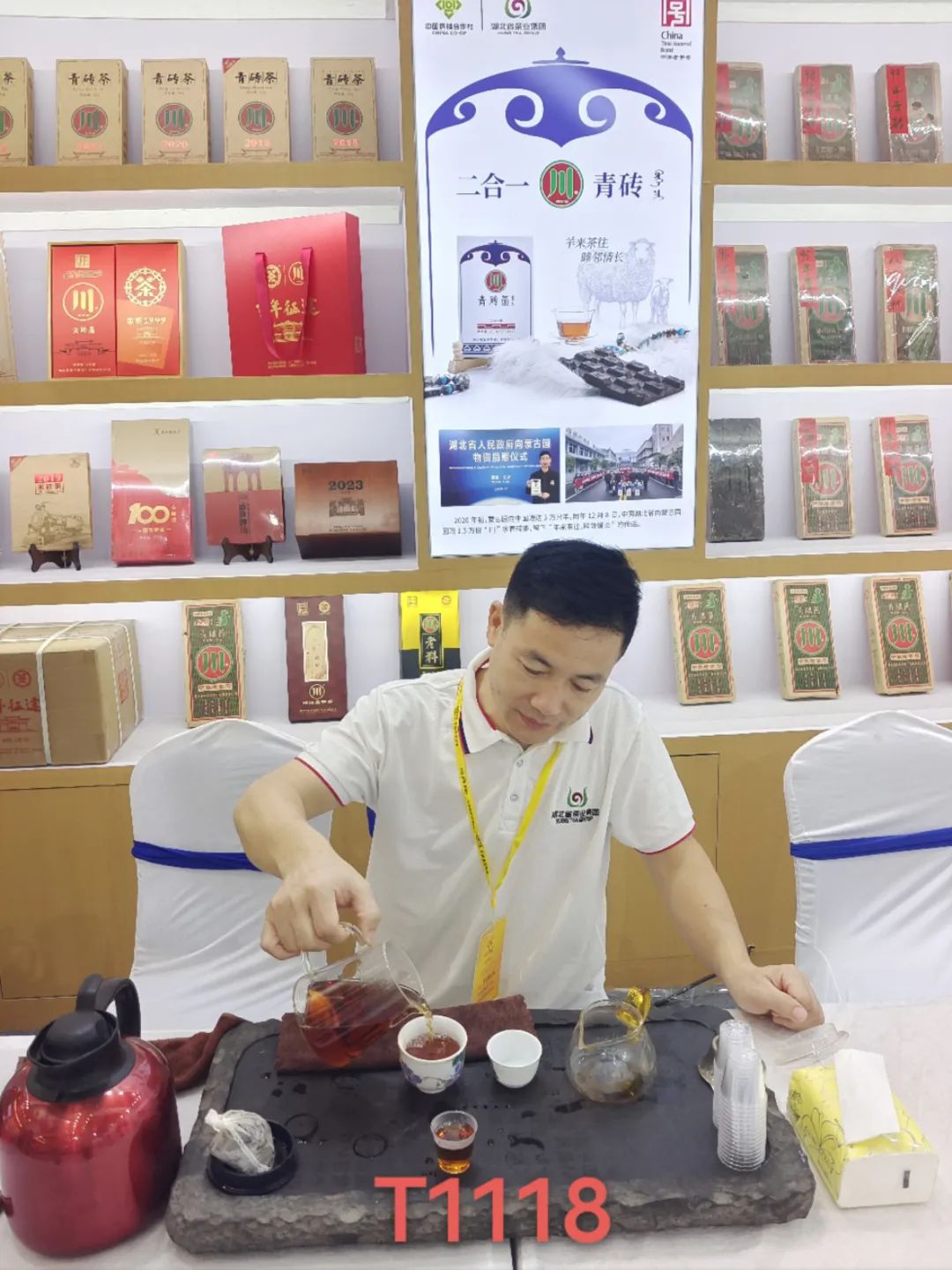 此次展會(huì)上,開展第一天展位人氣高漲,高朋滿座,茶友們爭(zhēng)先恐后的想要品嘗趙李橋茶廠此次帶來的2023“川”字牌標(biāo)準(zhǔn)版青磚茶、全新包裝二合一型青磚茶以及新款上市的2023火車頭米磚茶等,現(xiàn)場(chǎng)陳香四溢,以橙紅透亮的湯色,氣韻濃厚、回甘醇正的口感,精致的產(chǎn)品形態(tài)博得眾多嘉賓青睞。同時(shí)亮相的“盛世牌坊”、“百年征途”等系列產(chǎn)品在現(xiàn)場(chǎng)同樣備受廣大嘉賓好評(píng)。