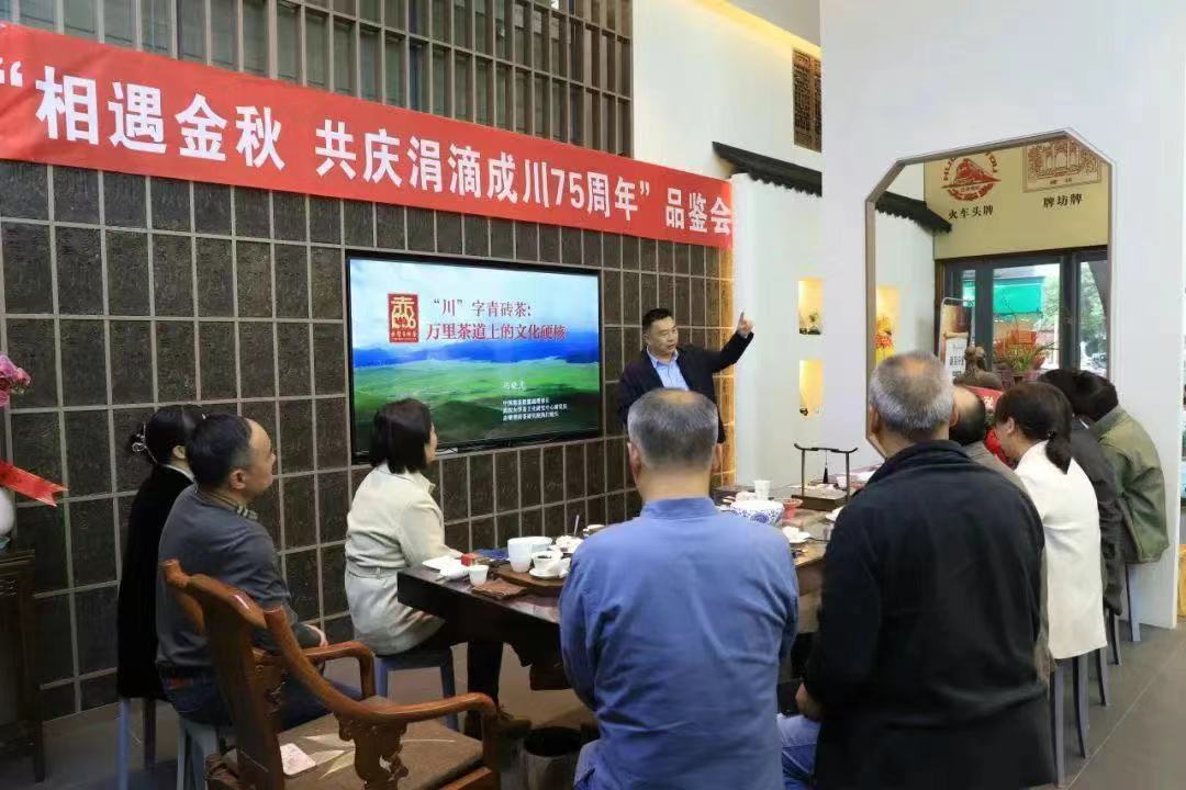品鑒會上,人類非物質(zhì)文化遺產(chǎn)——趙李橋磚茶制作技藝第五代代表性傳承人、“國茶人物·制茶大師”、“荊楚工匠”陳軍海分享 “90 年代米磚茶” 的品質(zhì)、口感以及 “涓滴成川”系列產(chǎn)品故事,讓大家深入了解這款茶的魅力和背后的文化內(nèi)涵。赤壁青磚茶研究院執(zhí)行院長馮曉光先生講解萬里茶道上“川”字牌青磚茶的故事,帶領(lǐng)大家穿越時空,領(lǐng)略“川”字牌青磚茶在漫長歷史中的傳奇歷程。