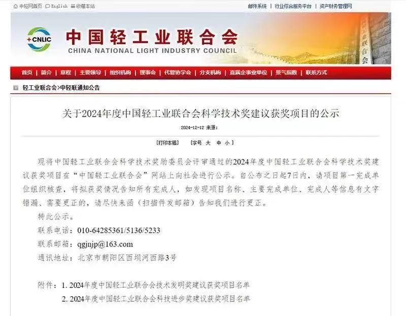 據悉,中國輕工業(yè)聯(lián)合會科學技術獎是由國家科學技術獎勵工作辦公室批準設立,旨在貫徹《國家科學技術獎勵條例》,表彰在我國輕工業(yè)領域的科學研究、技術創(chuàng)新與開發(fā)、科研成果推廣和實現(xiàn)高新技術產業(yè)化中做出突出貢獻的組織和個人,從而調動輕工業(yè)科學技術工作者的積極性和創(chuàng)造性,加速輕工業(yè)科學技術事業(yè)的發(fā)展,提升輕工行業(yè)技術水平。