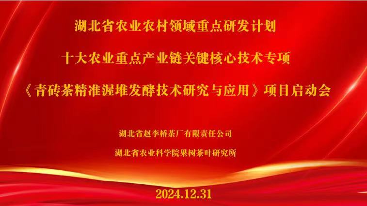 12月31日,由湖北省趙李橋茶廠有限責(zé)任公司承擔(dān)的湖北省農(nóng)業(yè)農(nóng)村領(lǐng)域重點研發(fā)計劃十大農(nóng)業(yè)重點產(chǎn)業(yè)鏈關(guān)鍵核心技術(shù)專項“青磚茶精準(zhǔn)渥堆發(fā)酵技術(shù)研究與應(yīng)用”項目啟動會在趙李橋茶廠順利召開。