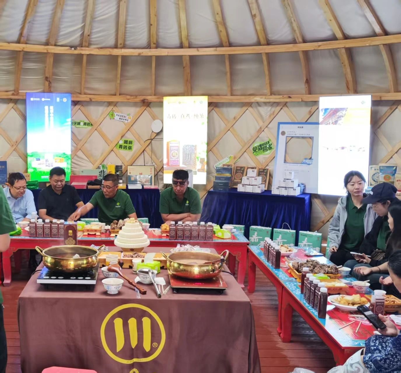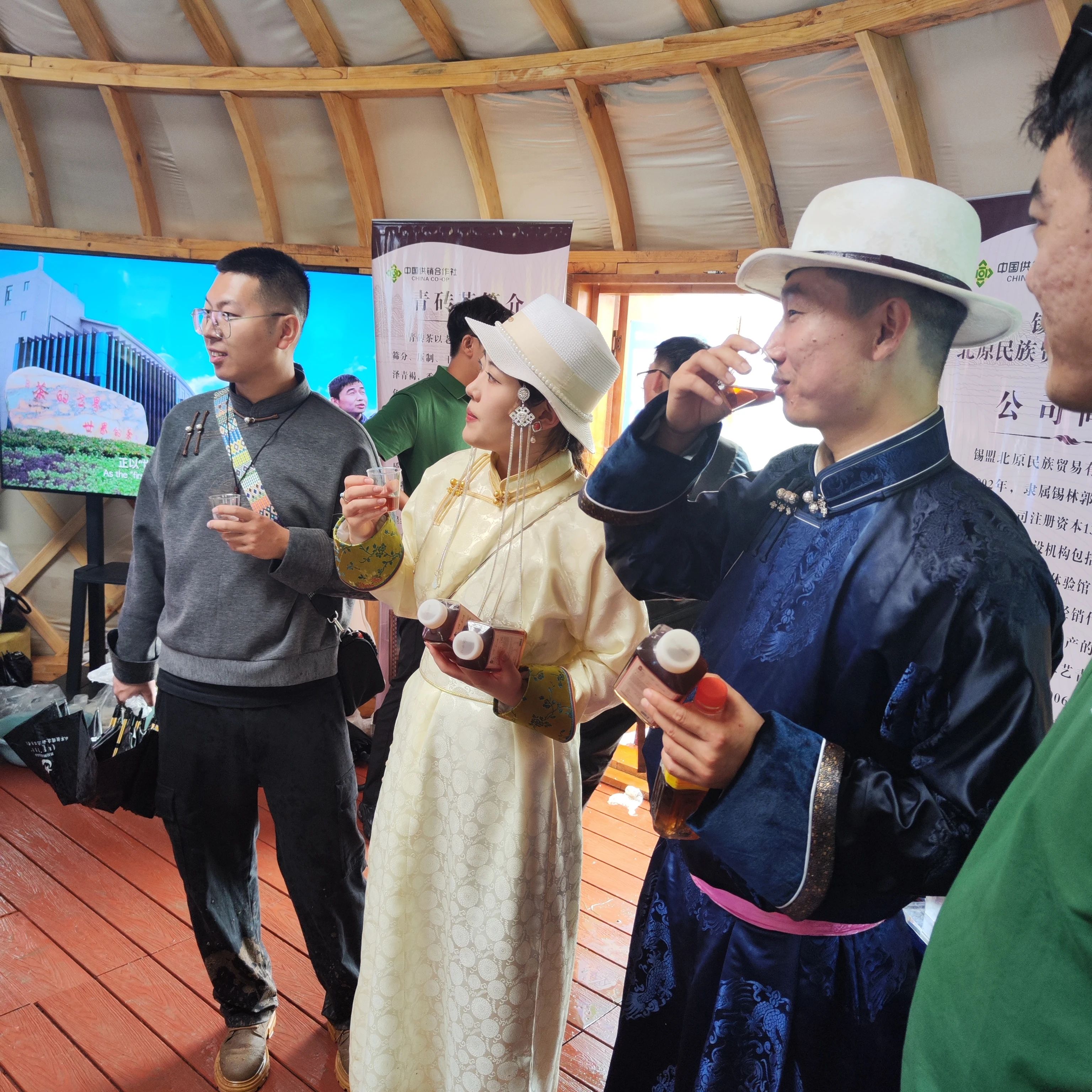 在那達(dá)慕大會現(xiàn)場,錫林郭勒盟供銷社發(fā)揮組織協(xié)調(diào)作用,指導(dǎo)錫林郭勒盟北原民族貿(mào)易有限責(zé)任公司(簡稱“北原公司”)與趙李橋茶廠等企業(yè)共同打造了特色農(nóng)畜產(chǎn)品及青磚茶產(chǎn)品展示蒙古包。包內(nèi)精心布置的各個區(qū)域各具特色,其中,代表著趙李橋茶廠百年制茶工藝與深厚文化底蘊的 “川” 字牌印記青磚茶陳列區(qū)尤為引人注目,向參會群眾和客商充分展現(xiàn)了咸寧特色農(nóng)產(chǎn)品的獨特魅力。