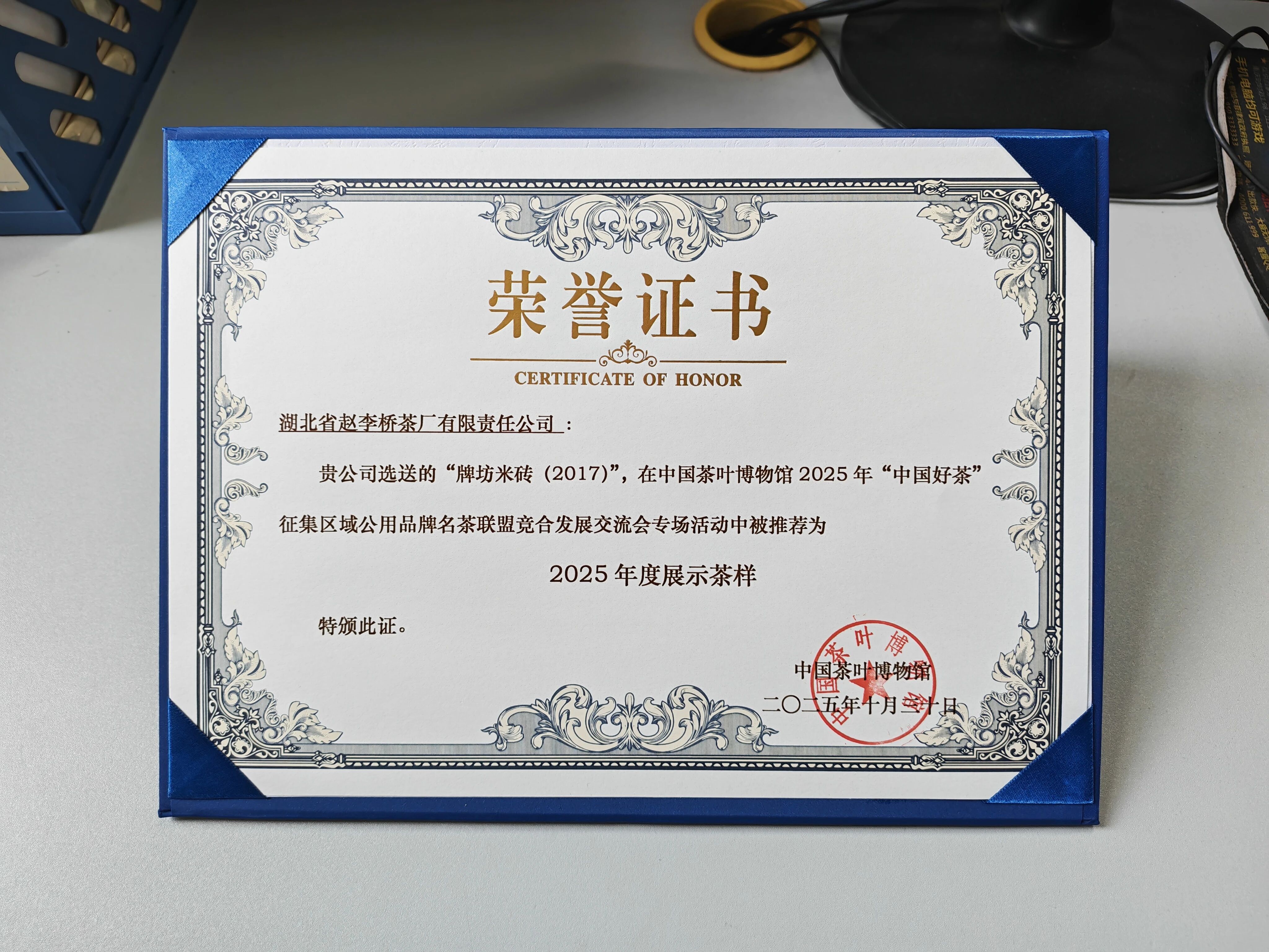 喜報(bào)|趙李橋茶廠 “牌坊米磚(2017)” 入選中國(guó)茶葉博物館 2025 年度展示茶樣