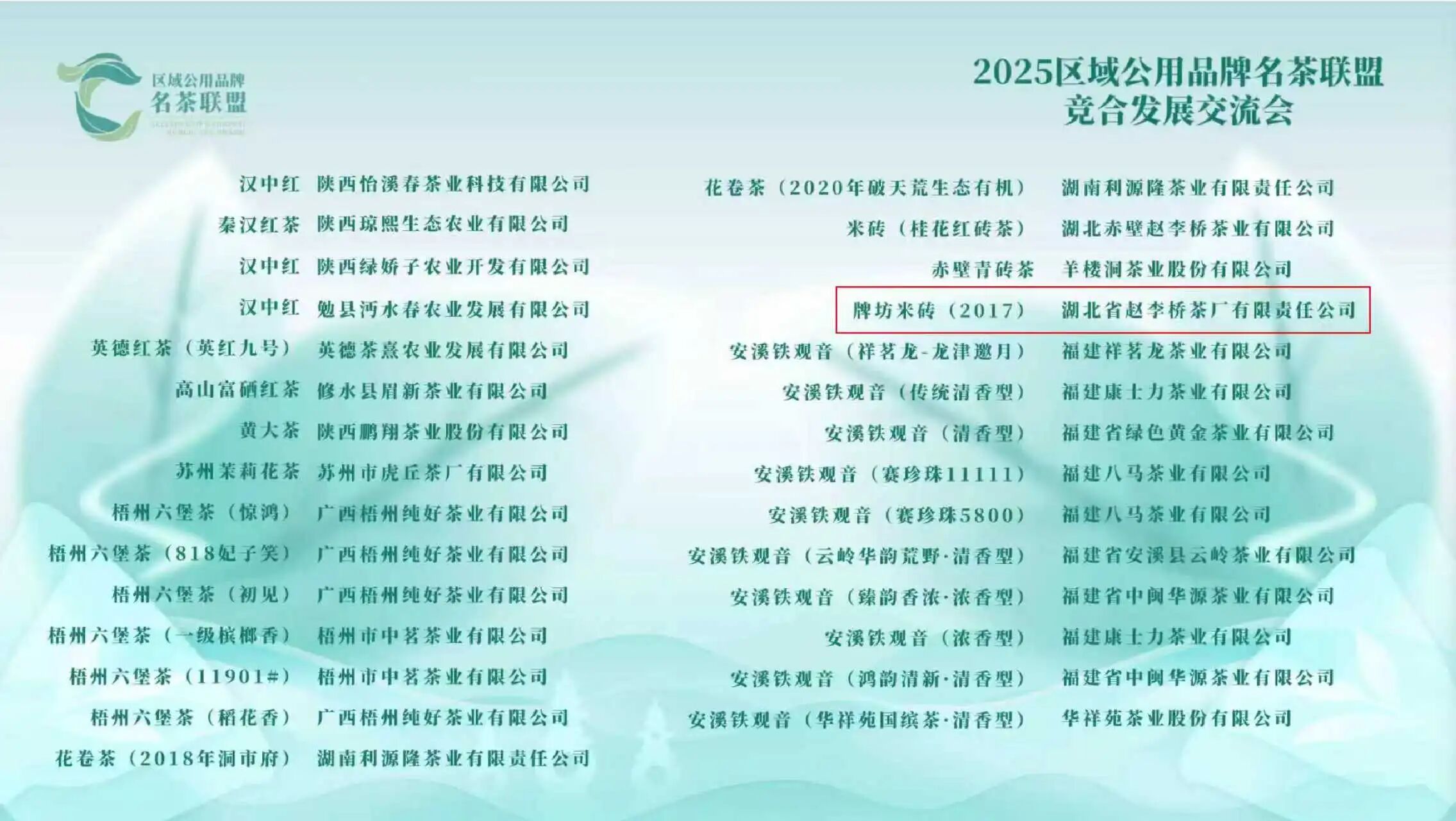 近日,從中國(guó)茶葉博物館2025年 “中國(guó)好茶” 征集區(qū)域公用品牌名茶聯(lián)盟競(jìng)合發(fā)展交流會(huì)傳來(lái)喜訊:湖北省趙李橋茶廠有限責(zé)任公司選送的 “牌坊米磚(2017)”,憑借卓越品質(zhì)、精湛工藝與深厚文化底蘊(yùn),被推薦為2025年度展示茶樣!