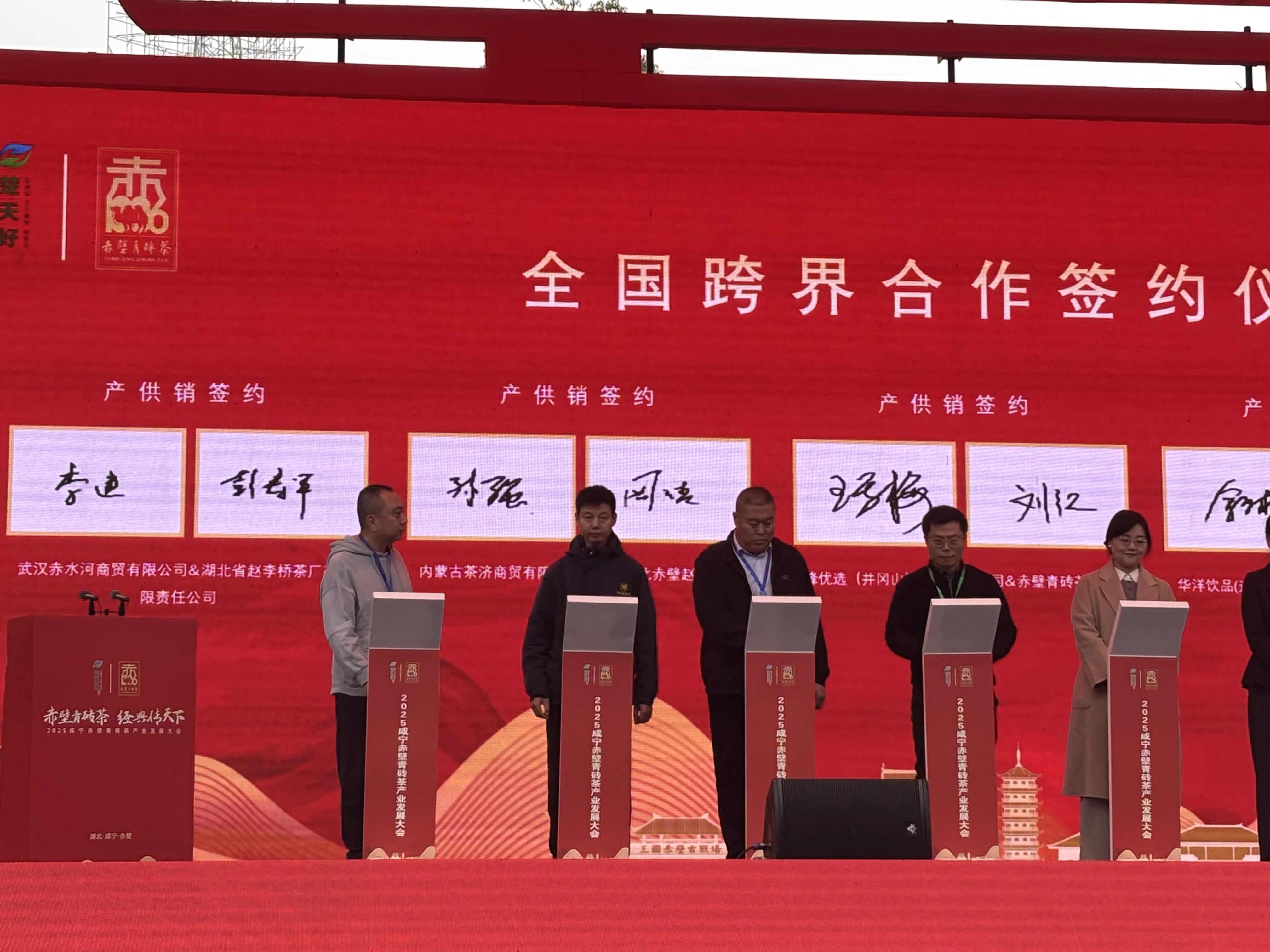 活動(dòng)現(xiàn)場(chǎng),在全場(chǎng)嘉賓的共同見證下,湖北省趙李橋茶廠有限責(zé)任公司與鄂爾多斯市恒得利商貿(mào)有限公司、武漢赤水河商貿(mào)有限公司舉行了隆重的簽約儀式。茶廠代表與兩家企業(yè)負(fù)責(zé)人鄭重簽署合作協(xié)議,標(biāo)志著三方將在青磚茶產(chǎn)品推廣、渠道拓展、品牌共建等領(lǐng)域展開深度合作,為產(chǎn)業(yè)發(fā)展注入新動(dòng)能。