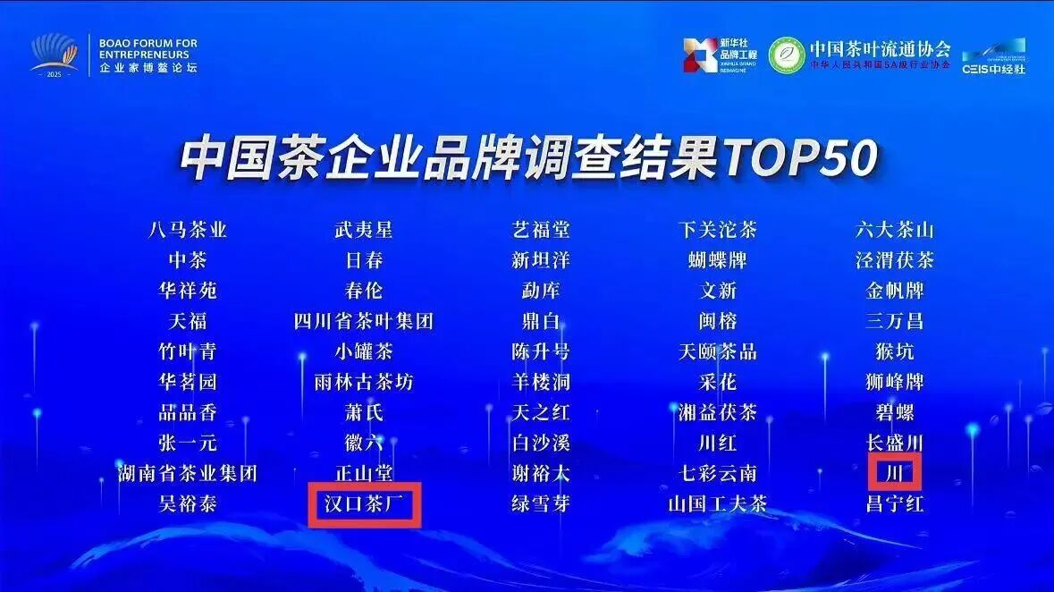 11月27日,由新華社品牌工作辦公室、中國經(jīng)濟信息社與中國茶葉流通協(xié)會聯(lián)合主辦的2025中國茶品牌建設(shè)論壇在浙江新昌隆重召開。論壇上,備受行業(yè)關(guān)注的“2025中國茶品牌(區(qū)域公用品牌、企業(yè)品牌)TOP50”系列調(diào)查成果正式發(fā)布,湖北省趙李橋茶廠有限責(zé)任公司憑借深厚的品牌積淀與卓越的發(fā)展實力,成功躋身企業(yè)品牌TOP50行列,與全國茶界標(biāo)桿企業(yè)同臺,共同彰顯中國茶品牌的蓬勃活力。
